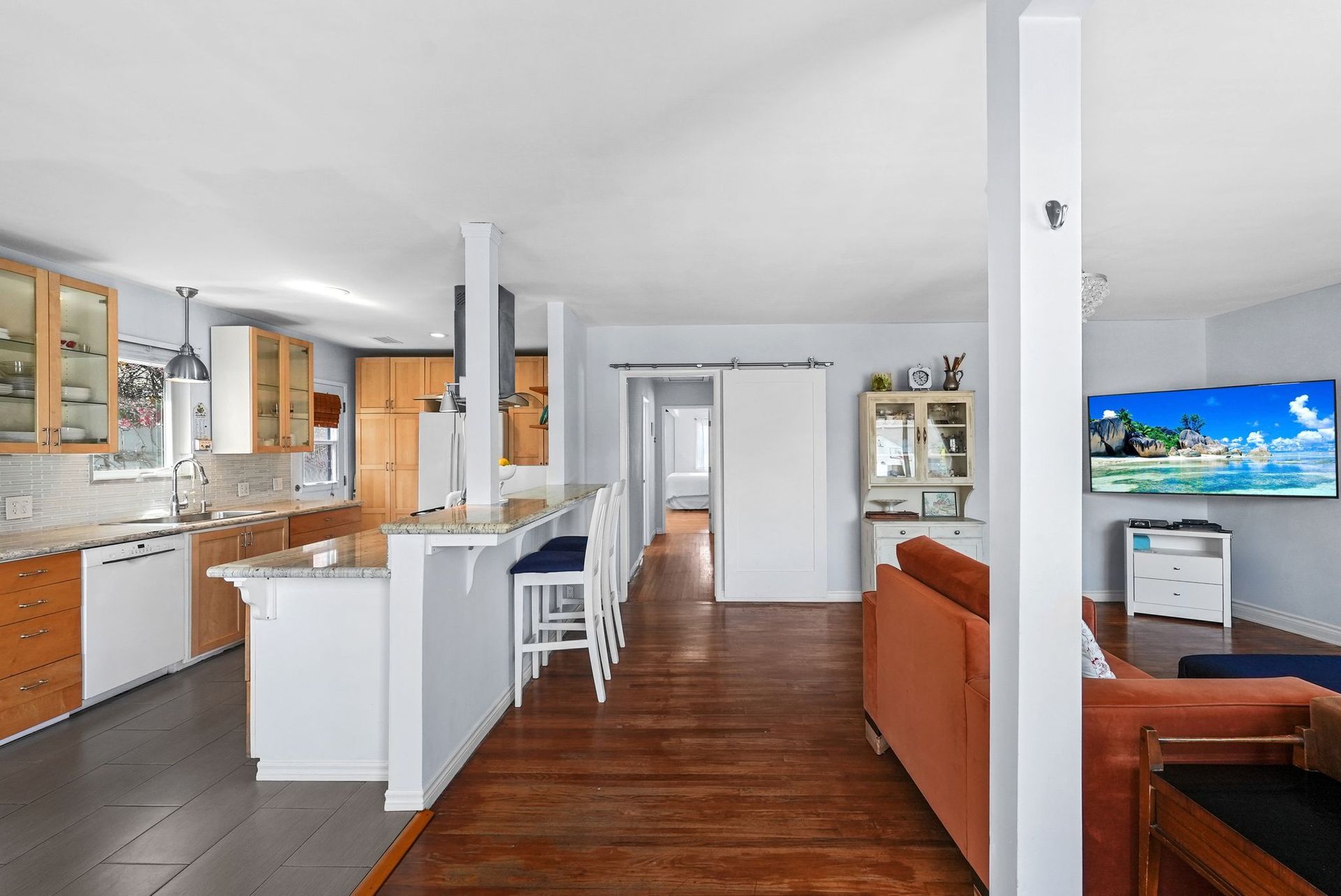 Welcome to your ideal Del Rey retreat! This charming 3-bedroom, 2-bath California bungalow perfectly blends classic character with fresh, coastal energy. Inside, the open-concept kitchen, equipped with an abundance of counter space and storage, flows right into the living and dining spaces, making it easy to host, relax, or just enjoy the ocean breeze that floats through the updated windows. The spacious light-filled primary bedroom offers a peaceful escape, while the thoughtful updates throughout the home keep things light, bright, and inviting. Outside, your personal oasis awaits complete with a sunny front and back yard, and even your own apple and lemon trees. (Homemade pies and fresh lemonade, anyone?) The detached garage equipped with laundry and a half bathroom has been transformed into a versatile workspace and storage area, giving you room for all your creative projects and hobbies. Upgraded throughout, this home has been thoughtfully and meticulously maintained over years. Located on one of the friendliest streets in town, where neighbors know your name and the annual block party is a highlight of the year, this home truly feels like community. Plus, you're just moments from the highly-rated Short Avenue Elementary School, Ocean Charter, local shops, restaurants, and of course, the beach and marina itself. Come live the Marina Del Rey lifestyle where every day feels a little lighter, a little brighter, and a lot more fun.