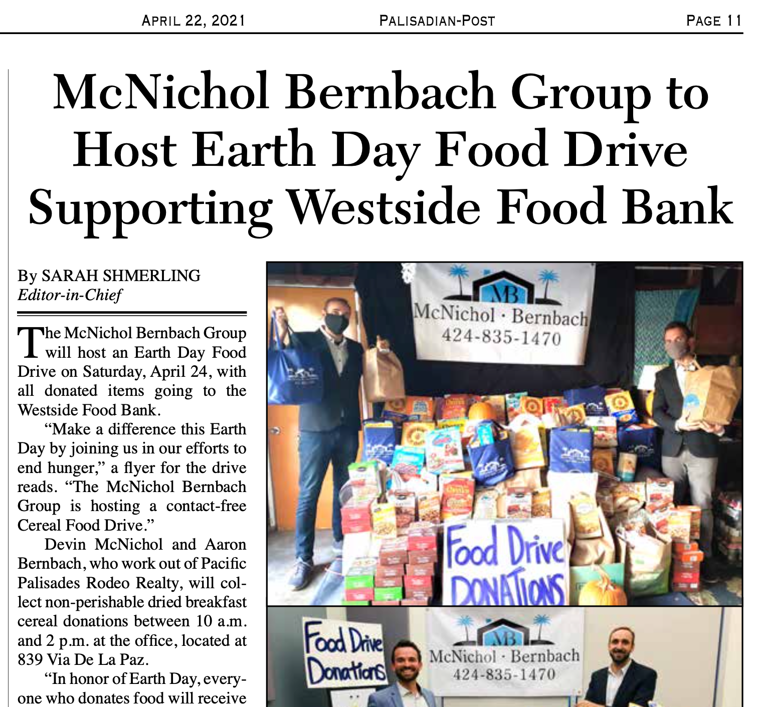 McNichol Bernbach Group to Host Earth Day Food Drive Supporting Westside Food Bank