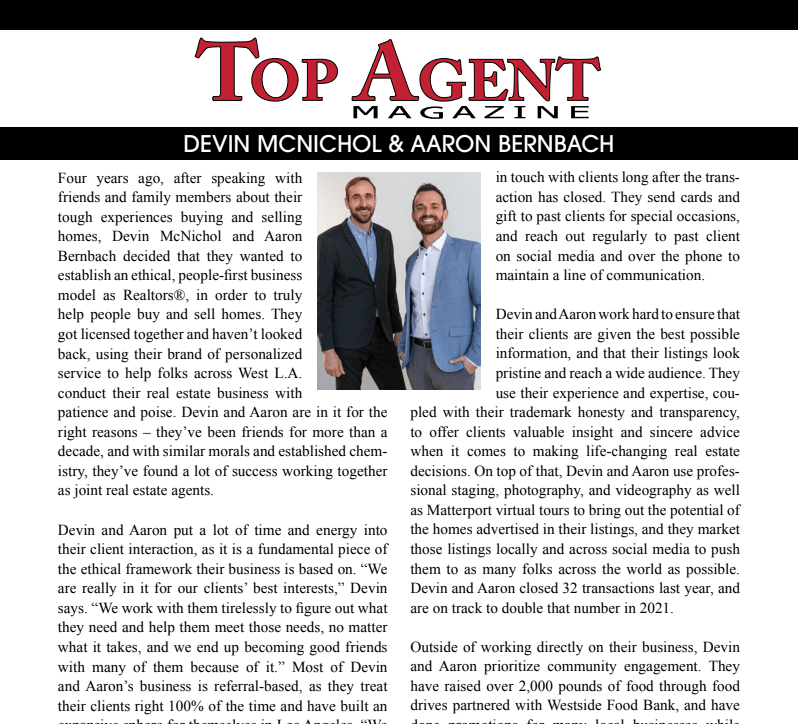 Top Agent Magazine: Devin McNichol & Aaron Bernbach
